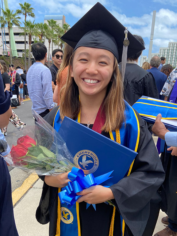 DELAND, FL — Mia is graduating summa cum laude with a degree in aeronautical science as a member of the Alpha Omicom Alpha Aeronautical Honor Society. After graduation, Mia plans to work towards a master’s degree while working as a commercial airline pilot.